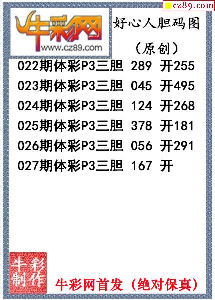 好心人送胆027期体彩p3图谜(原创)