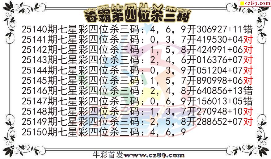 > 七星彩2025150期毒霸第四位杀三码图迷