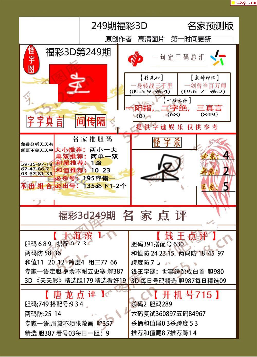 > 25年249期福彩3d牛彩名家预测图谜