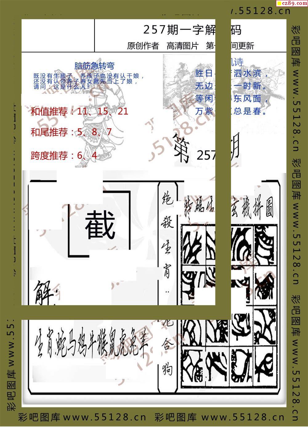 25年257期一字解特码福彩3d彩报