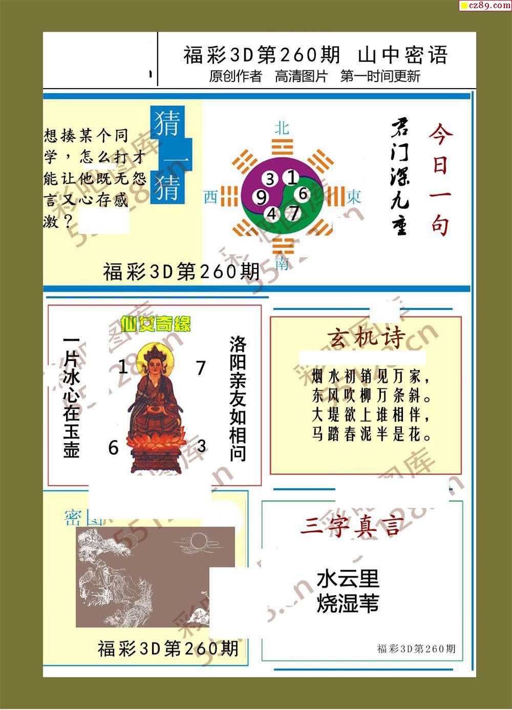 福彩3d25年260期山中密语彩报