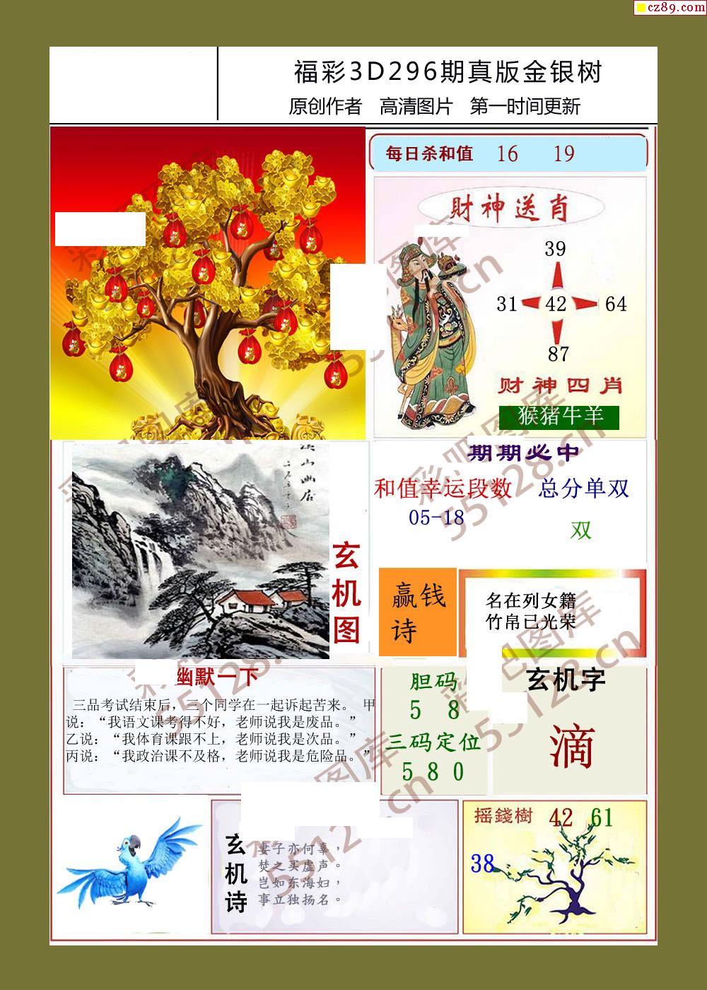 金银树25年296期福彩3d字画谜