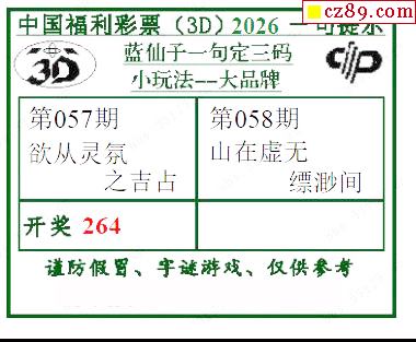 > 2026058期蓝仙子一句定三码
