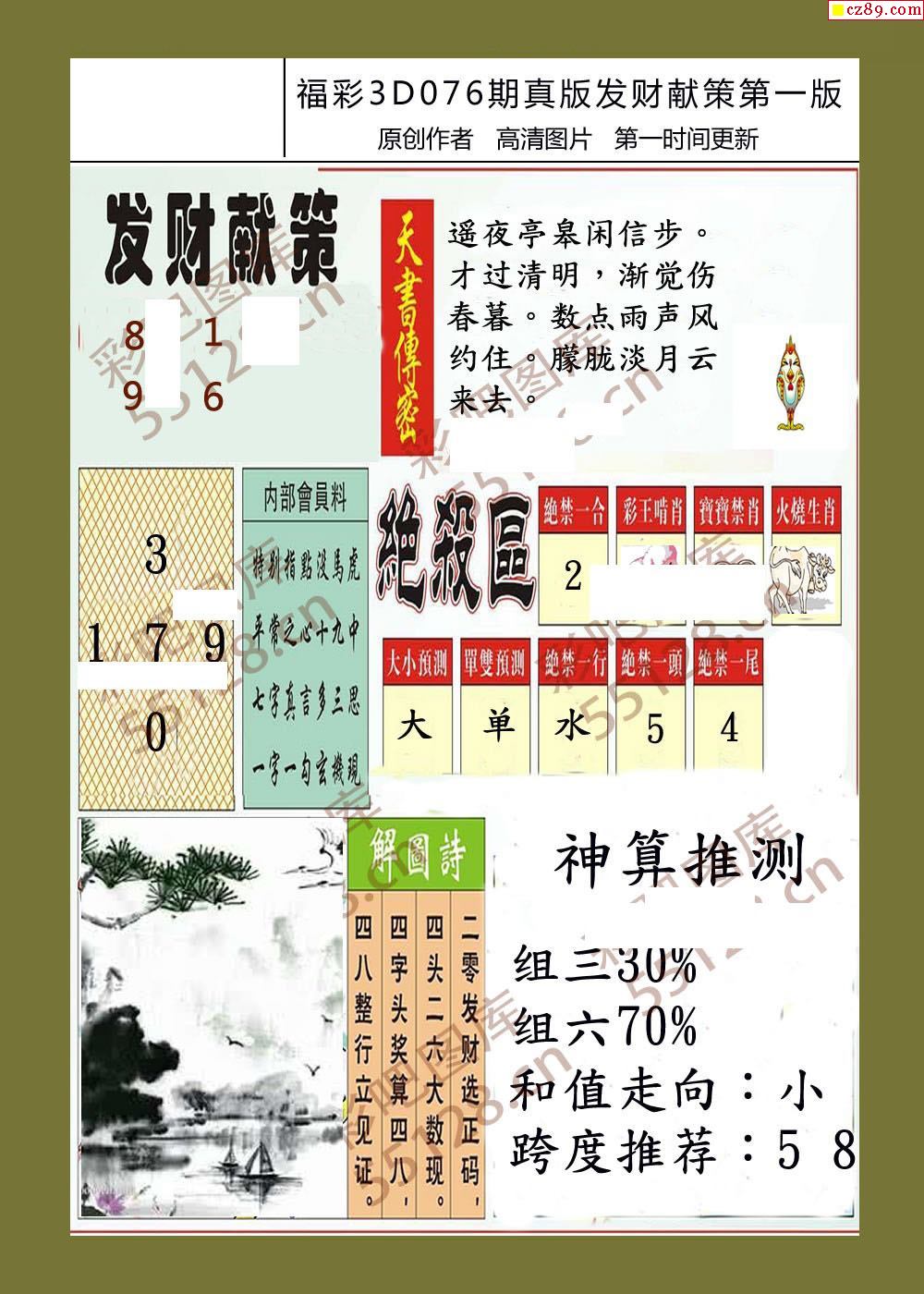 > 发财献策26年076期福彩3d字画报